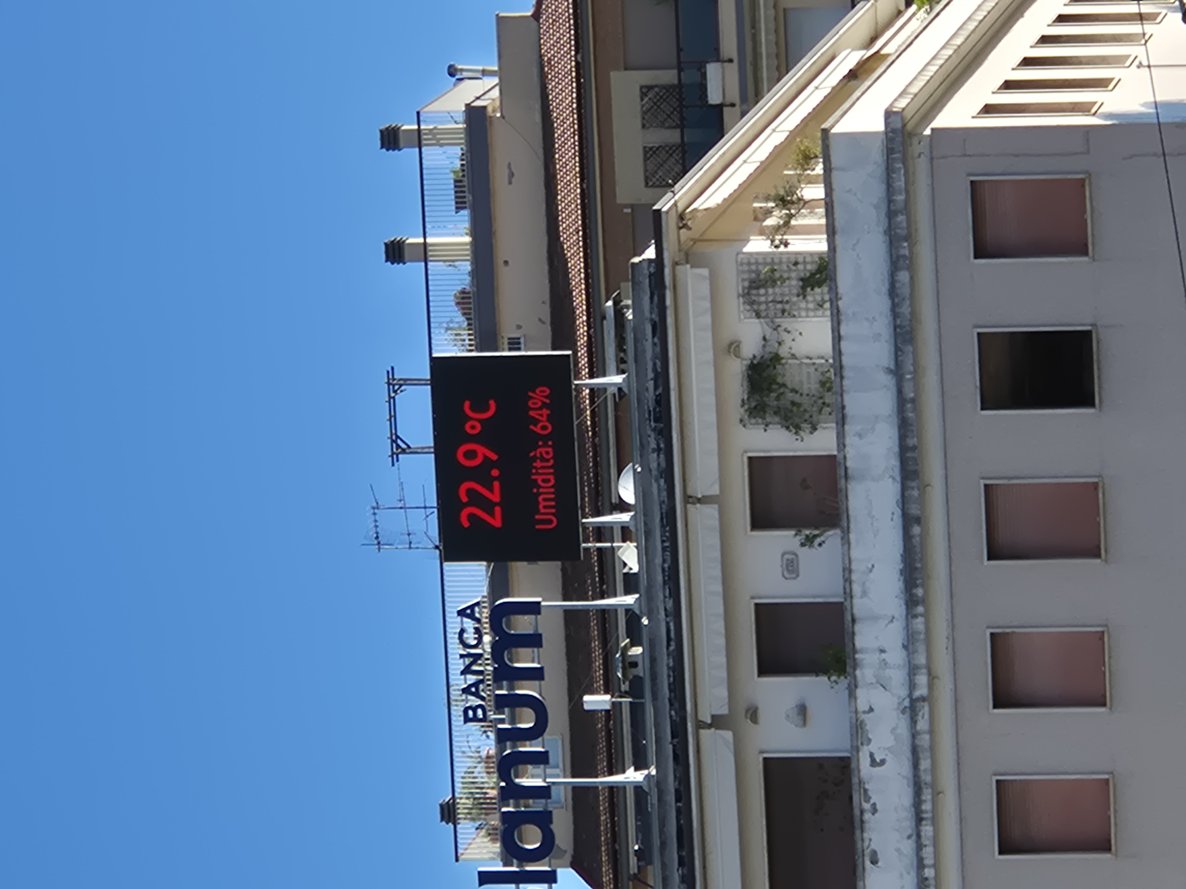 Pescara linnas oli infotahvel mis näitas erinevat infot. Muuseas ka temperatuuri, ning sellele oli lisatud ka niiskuse protsent õhus. Itaalias on niiskuse tase peaaegu koguaeg kõrge. Näiteks olen lugenud, ja ka näinud, et majad lähevad tihti hallitama, kuna pole piisavalt head ventilatsiooni. Et kui on soov siia maja või korter osta, siis seda kindlasti jälgida! Poode, restorane, hotelle ja muid ruume kuhu olen sattunud – olen tihti näinud hoonetes kuidas on osa krohvi maha tulnud või kuskil nurgas või akna ääres on hallitus. Pilt tehtud hommikul kell 9.12.