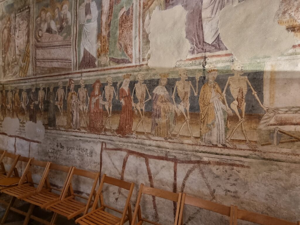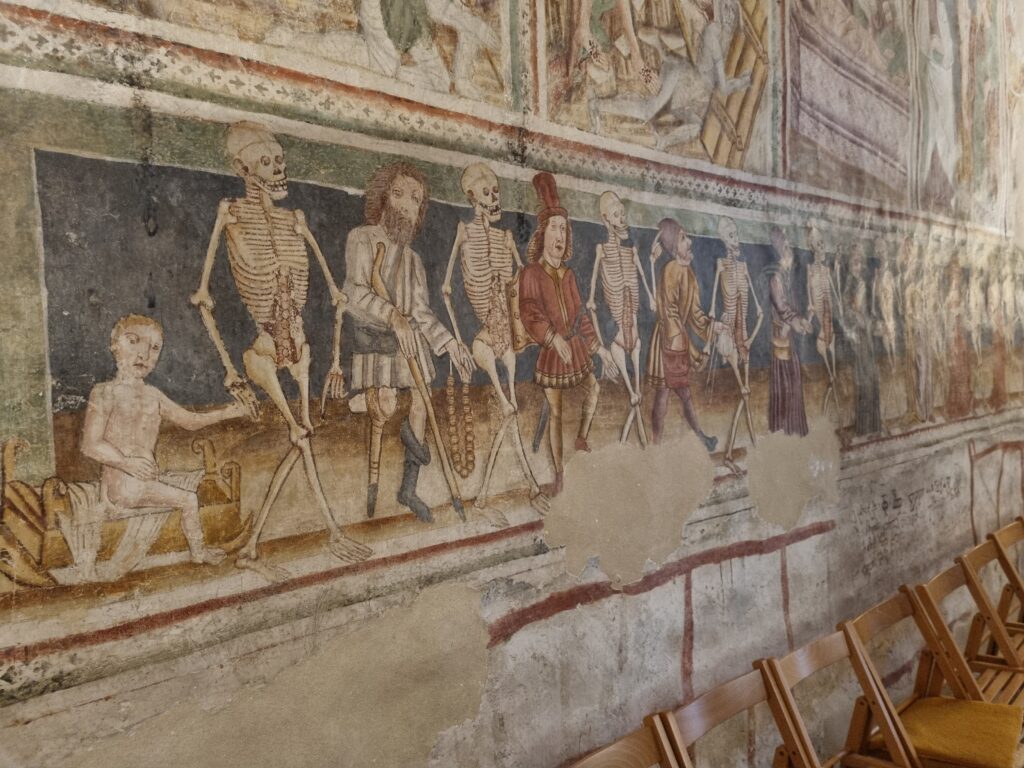 Teiseks teeb eriliseks kiriku seintel olevad freskod, neist kuulsaim 7 meetri pikkune “Surmatants”.