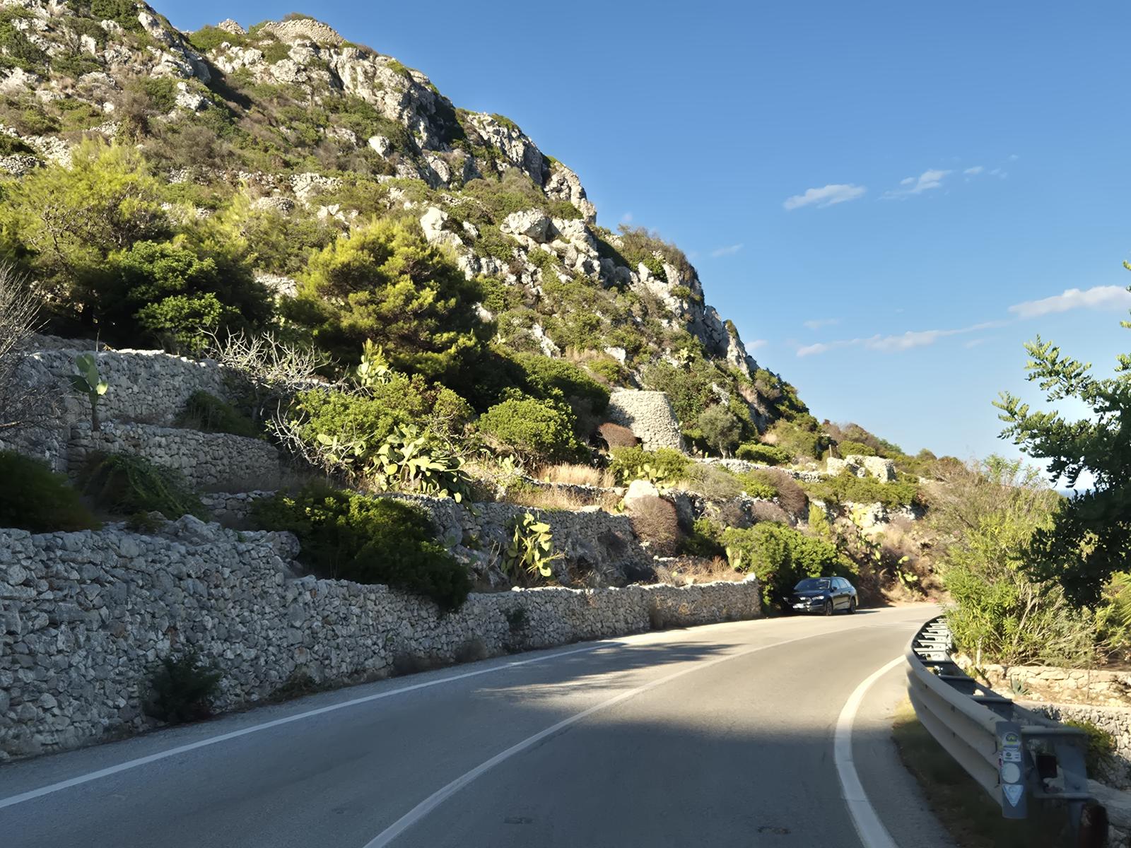 Edasi jätkus sõit ümber Gargano poolsaare. Autost tulin välja vaid paari pildi tegemiseks kuna ilm oli ikka väga külmaks läinud. Poolsaar oli mägine, seega teed olid ägedad ja vaated megad! Kuna ilm oli kehv ja suvine hooaeg on läbi, siis sai mägist teed nautida mõnuga! Peale esimest peatust sõitis mul ees üks Tšehhi Audi Q5 kellest ma ei soovinud maha jääda, seega sain mägiteid kohe mõnuga nautida. Seepärast ei teinud ka palju pilte, kuna kihutasin osadest ilusamatest kohtadest lihtsalt mööda. Torre di San Felice jäi ka pildile jäädvustamata, aga oma silmaga nägin ära nii torni kui merre ulatuva kalju millel auk sees.