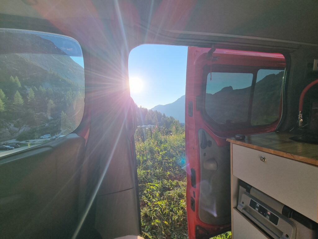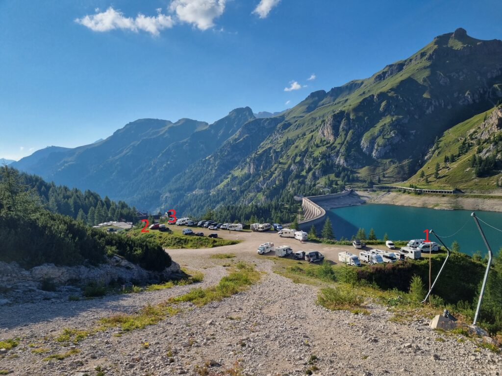 Neljandal päeval sain bussi liigutada pildil oleva number 3 kohta. Nüüd on kõik olemas. Sellel küljel pole naabreid kus on suur uks, siin on tasane maa, õhtune päike, mega vaade, parajad temperatuurid ja telefonis on internet! Kui keegi soovib matkata, augustis, Itaalias, siis see koht on ideaalne! Õhtuti on mega vaikus. Autosuvilaid on küll palju, aga keegi ei pea pidusid, vaid austatakse üksteist ja ollakse vaikselt. Ka hommikul ei ole mingit lärmi – ma ärkan üles pigem selle peale, et bussis on kuumaks läinud, kui et keegi tugevalt uksi paugutaks või lihtsalt lärmaks.