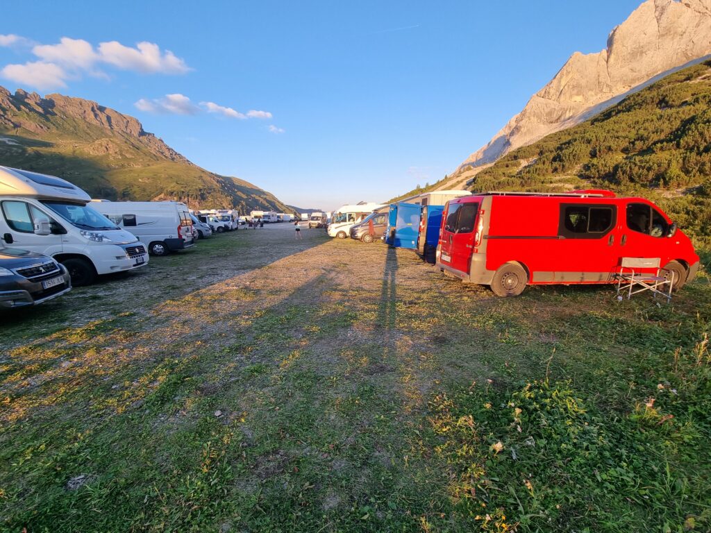 Siis nüüd on tekkinud hulga turiste, põhiliselt “frenchyd” (loe: prantslased), kes pargivad teisiti. Kuigi siin tegelikult “kämpida” ei tohi, siis allolevad autod ikka väga “kämbivad”. Siin tohib vaid parkida. Lugedes selle parkla kommentaare, siis inimesed on saanud trahvi (150€) ka selle eest, kui on auto tasandamiseks kasutanud tasandamisklotse, või -kiile, või kes kuidas neid nimetab. Samuti ei tohi kasutada matkatoole või -laudu, seada üles grille või teha muud “kämpimise” tegevusi väljaspool matkaautot (oleks vaja “kämpimise” kohta mingit head eestikeelset sõna – kes teab midagi head, võiks teada anda). Nendel päevadel, kui mina olen siin olnud, pole politseid märganud. Aga kommentaaridest loen, et need ikka aeg-ajalt patrullivad ja kirjutavad lahkesti trahve.