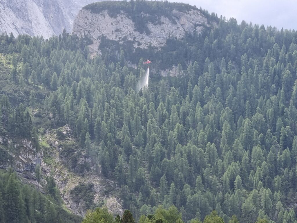 Laupäeval nägin oma silmaga kuidas helikopter maastikupõlengut kustutab. Kahjuks pole mul häid pilte, kuna üritasin videot teha, aga ka see ei tulnud just kõige paremini välja. Igatahes käis kopter võttis Fedaia järvest vett ning lendas siis umbes kilomeetri kaugusele ja kallas selle maha. Ma seda hetke ei näinud, kui seal leegid või isegi suitsu oleks tulnud. Tõenäoliselt tegid mingid matkajad seal lõket, mis pole seal lubatud, ja selle peale lendas kopter kohale. Päästekopter võttis vett ja kallas selle metsa maha umbes 10 korda.