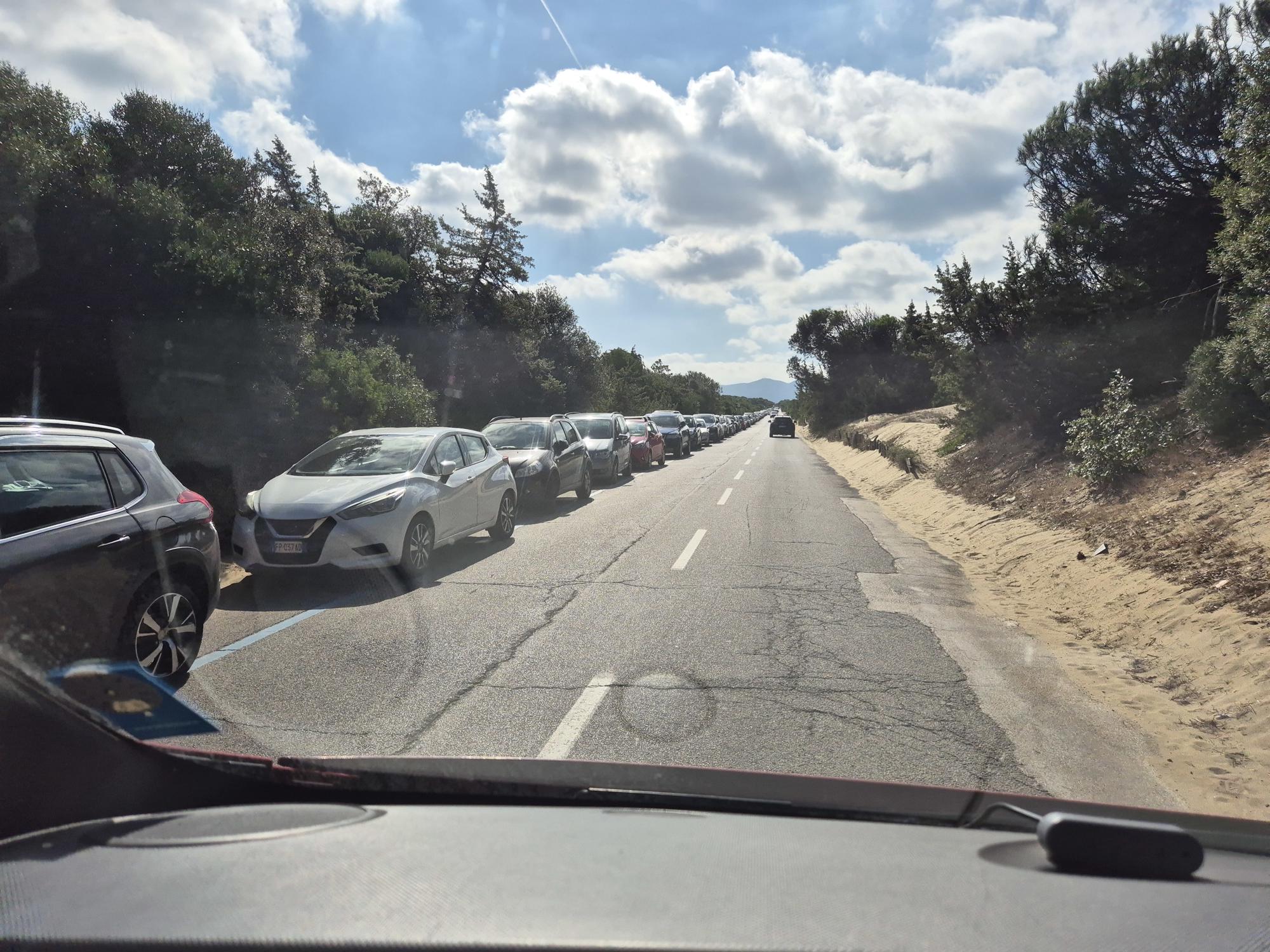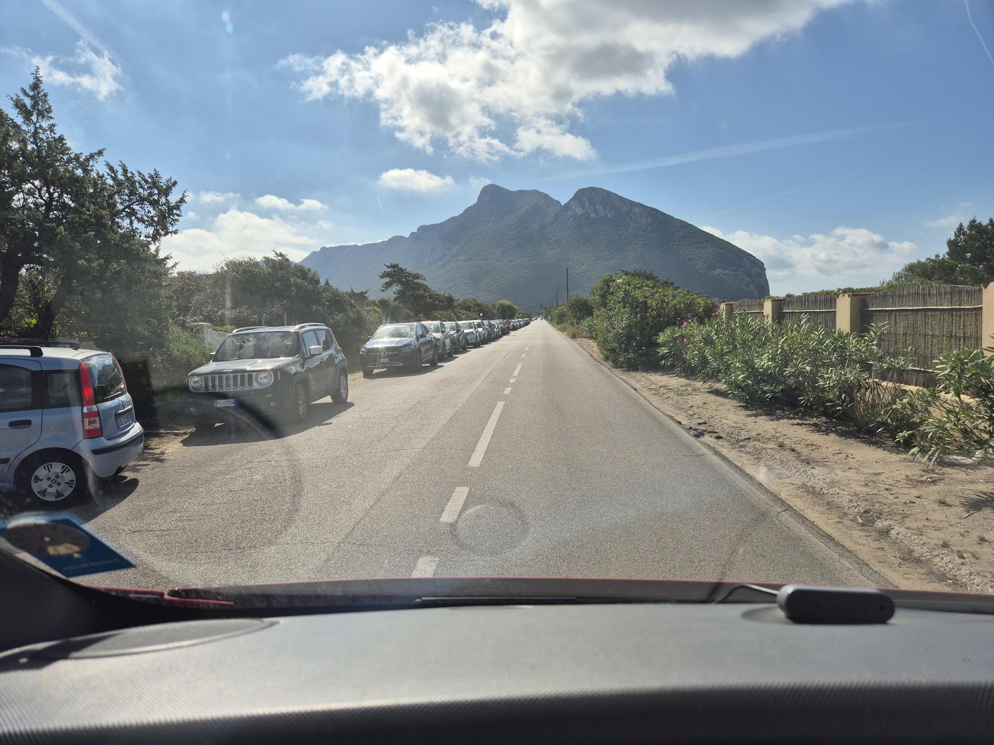 Kui muidugi leiad koha kuhu auto mahuks. Autosid oli küll palju, aga rannas hajusid inimesed ära. Autode rivi oli kilomeetreid. Kahel alloleval pildil on sama autode rivi ja mägi ees paistmas.